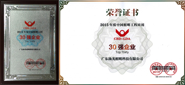 揚光照明榮獲“2015年度中國照明工程30強企業(yè)”稱號