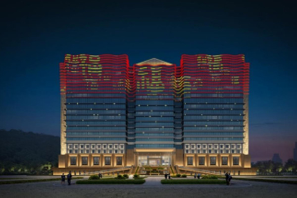 建筑頂部幕墻采用 RGBW 全彩燈光,通過智能控制,以立面動態圖案與定制動畫演繹企業形象,吸引多視角關注,深化企業品牌辨識度;控制系統設置平日、節假日模式,可根據不同節日定制專屬光影內容,并與廣場噴泉實現光影聯動,營造不同的場景氛圍。樓身則以大功率燈光做整體烘托,通過光影塑造建筑體量,強化空間視覺存在感。