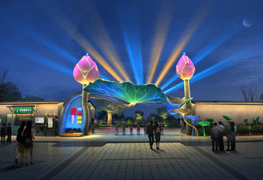 使用燈光技術(shù)豐富其色彩,多彩的空中激光束打造了入口環(huán)境的燈光效果,吸引了來自周圍地區(qū)的游客,提高公園的形象并在夜間提高其經(jīng)濟(jì)效益。